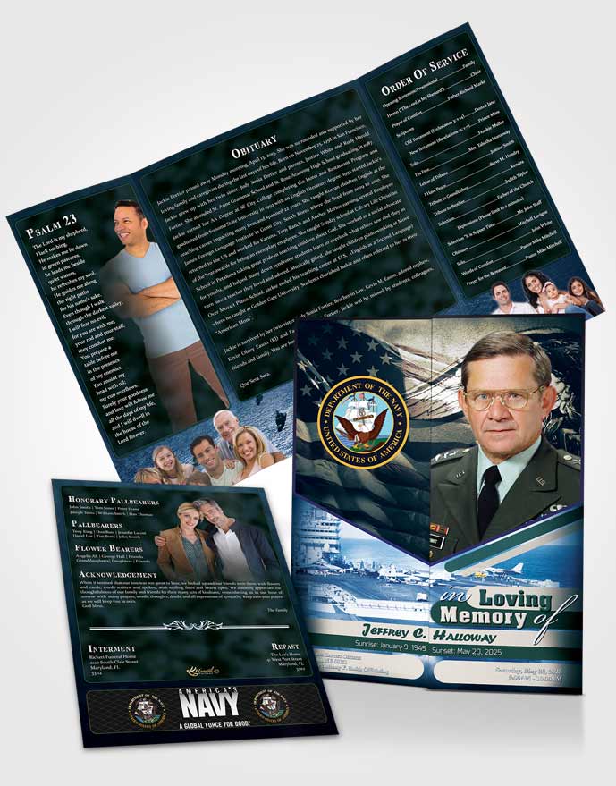 Obituary Funeral Template Gatefold Memorial Brochure 2nd Navy Sailor Desire